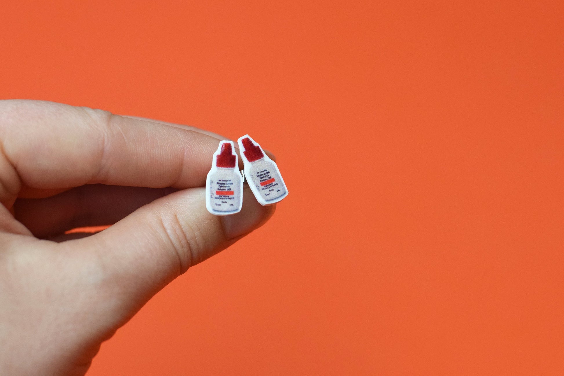 This earrings feature Atropine eye drop bottle. These will for sure be a conversation starter at work.