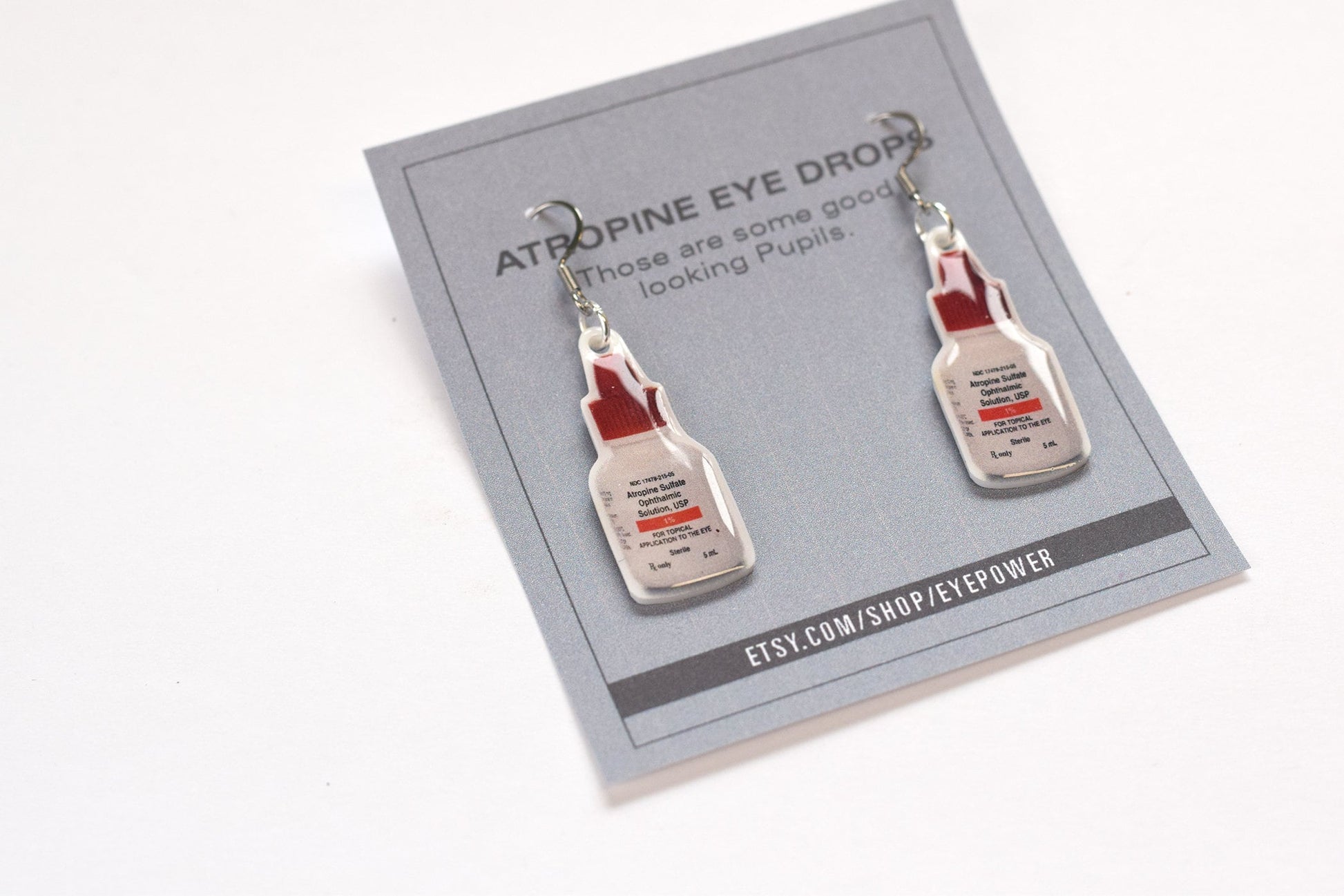 Atropine eye drop earrings, Optometry Earrings, Optometry Gift, Optometrist, Eye Doctor Gift, Eye, Doctor, hand made, eye drops, Eye Power