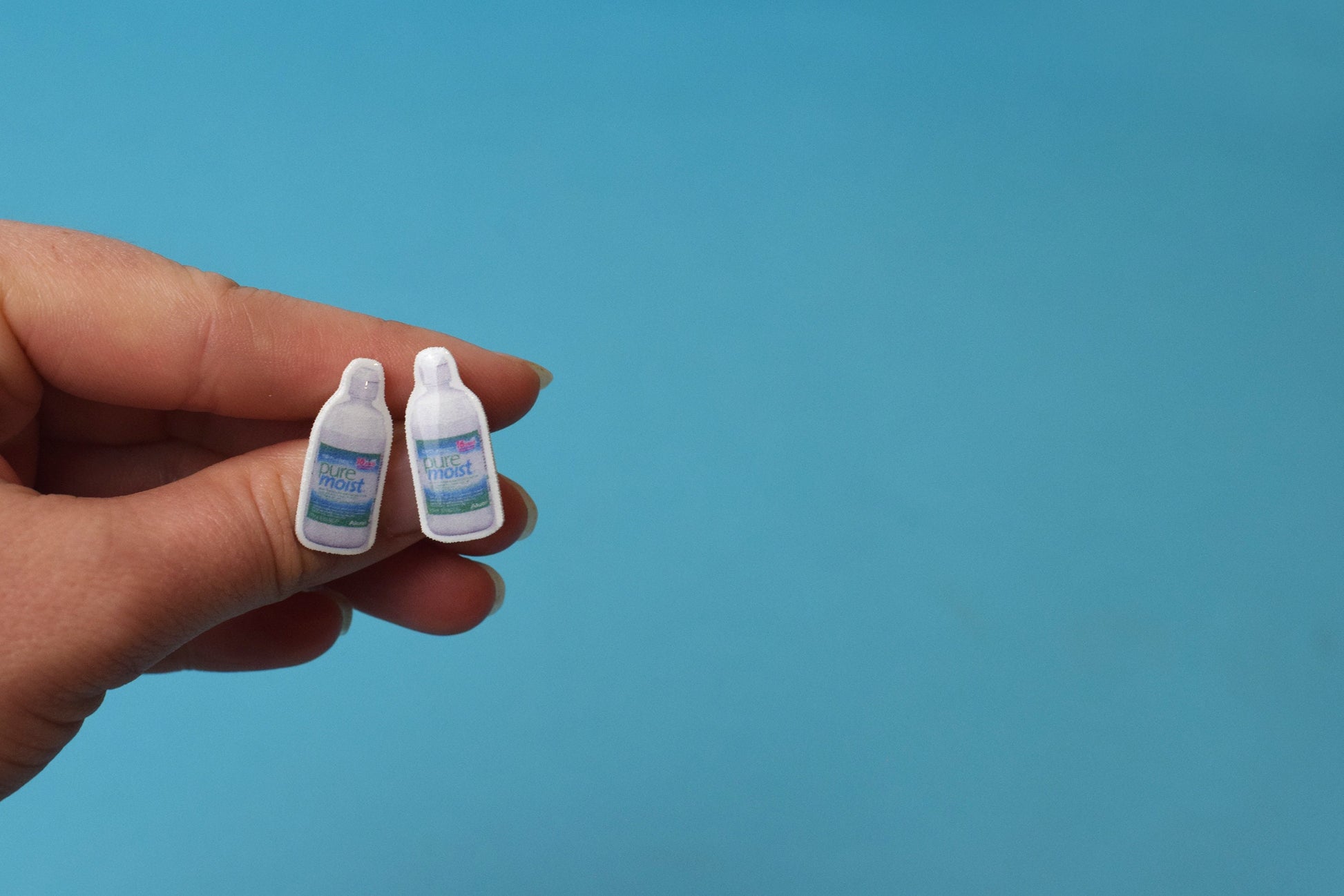 These fun earrings feature a contact solution bottle. These will for sure be a conversation starter at work.
