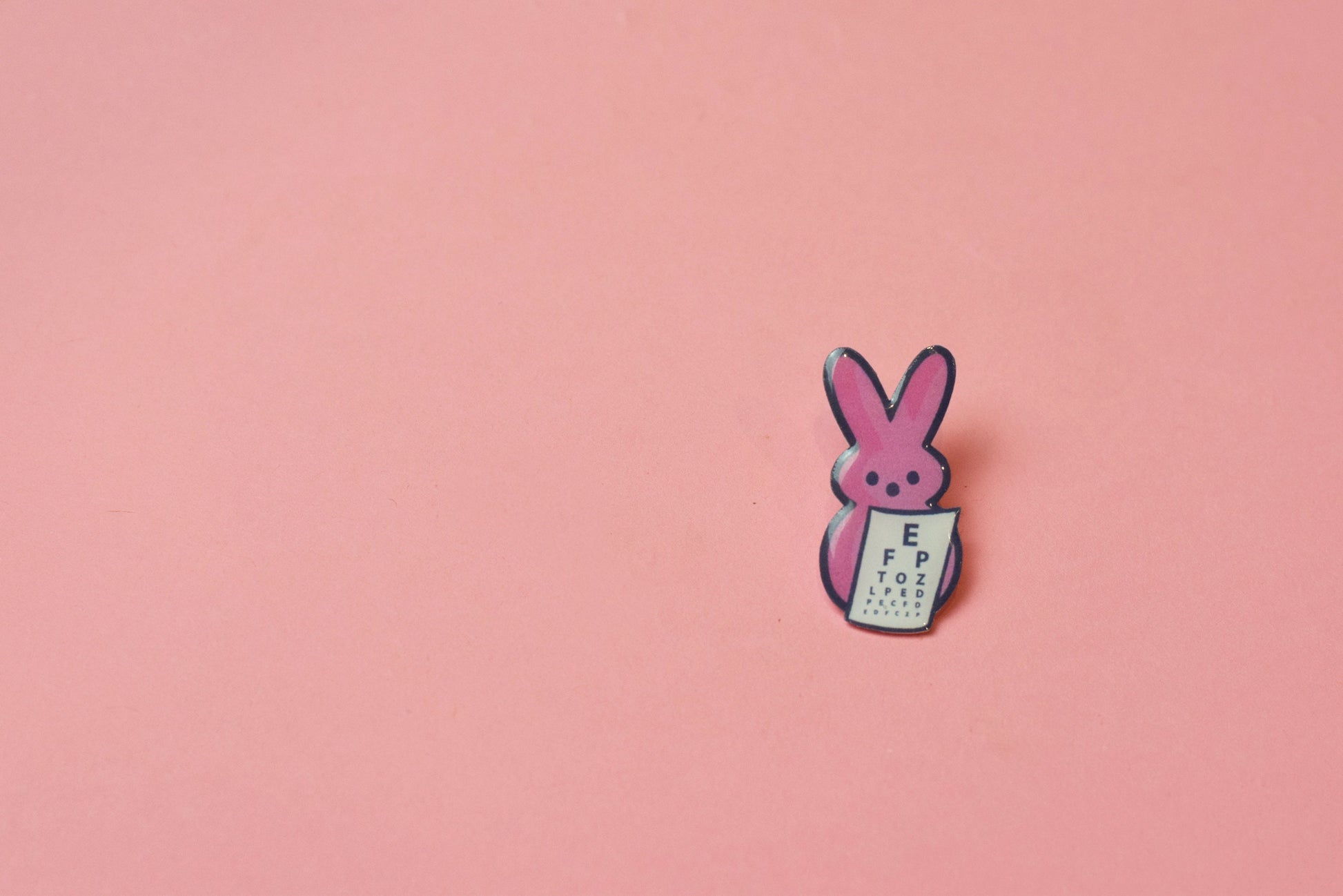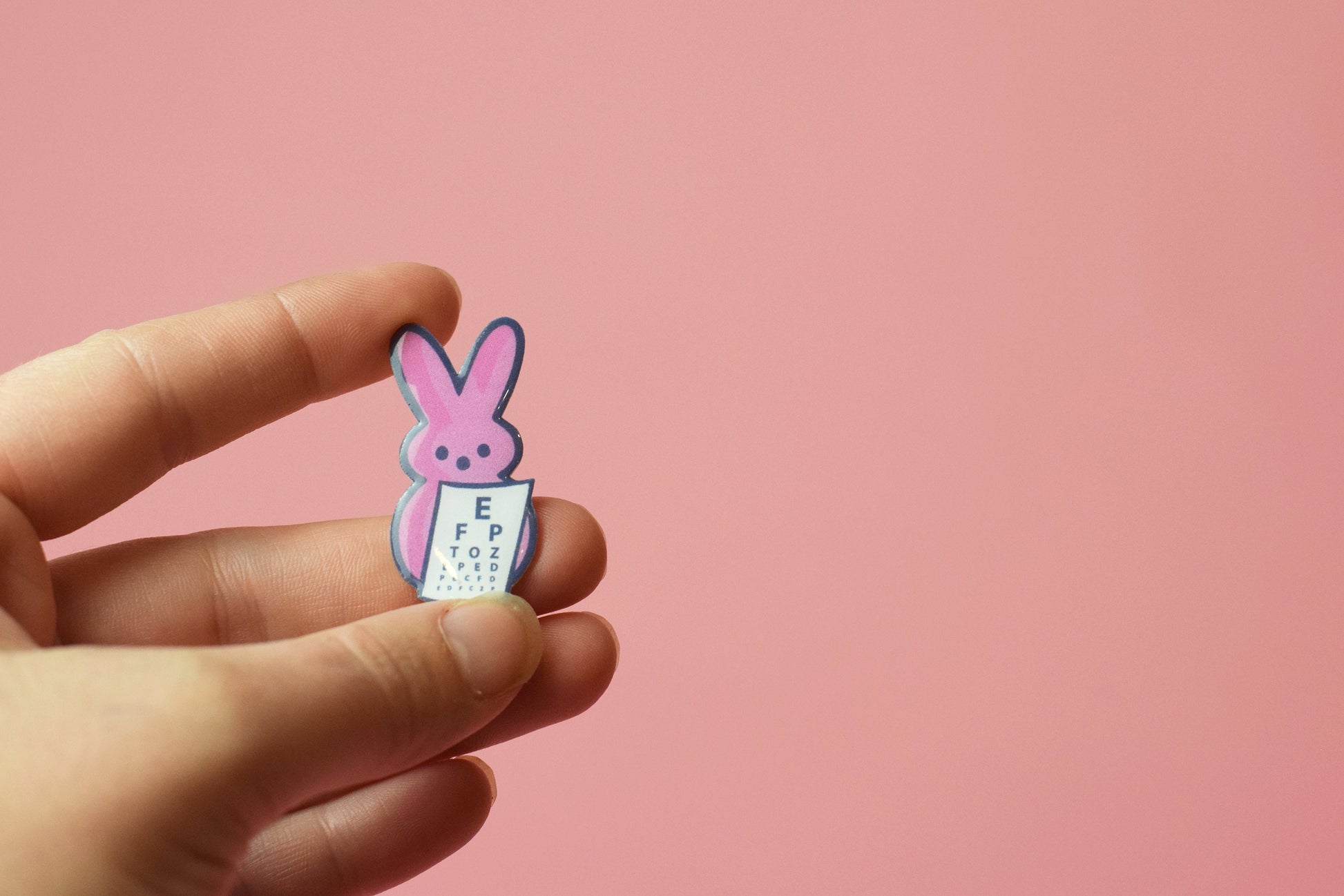 This fun pin/brooch will be a perfect statement piece for Easter. Great for your scrubs, white coat, bag, banner or more. Perfect for your pin collection. This pin is a cute peeps bunny holding an eye chart. We also have this design in earrings, see our other listing.