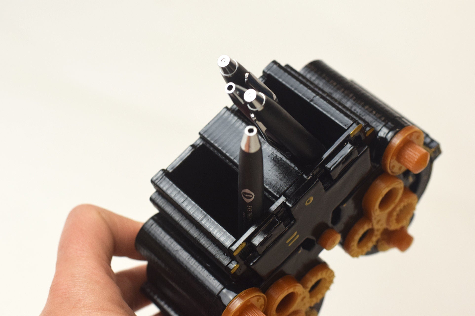 ~This pen holder is hand made. It is 3d printed and hand painted by me. All of our items are made with PLA plastic which is biodegradable and made from renewable resources like corn starch or sugar cane. Each pen holder is made to order.