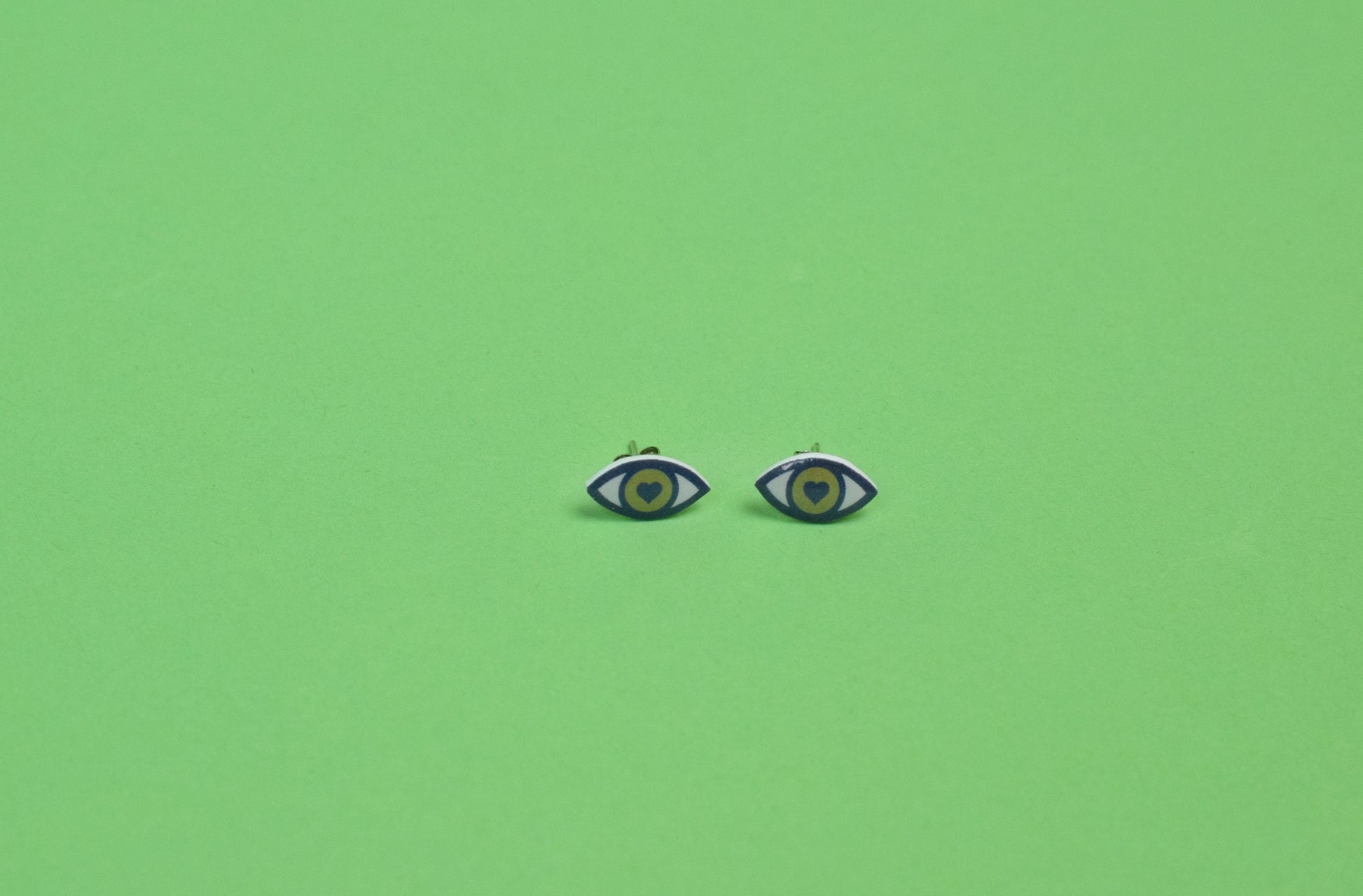 Looking for a fun statement earrings to wear to work? These Tiny green eye earrings are perfect for you.